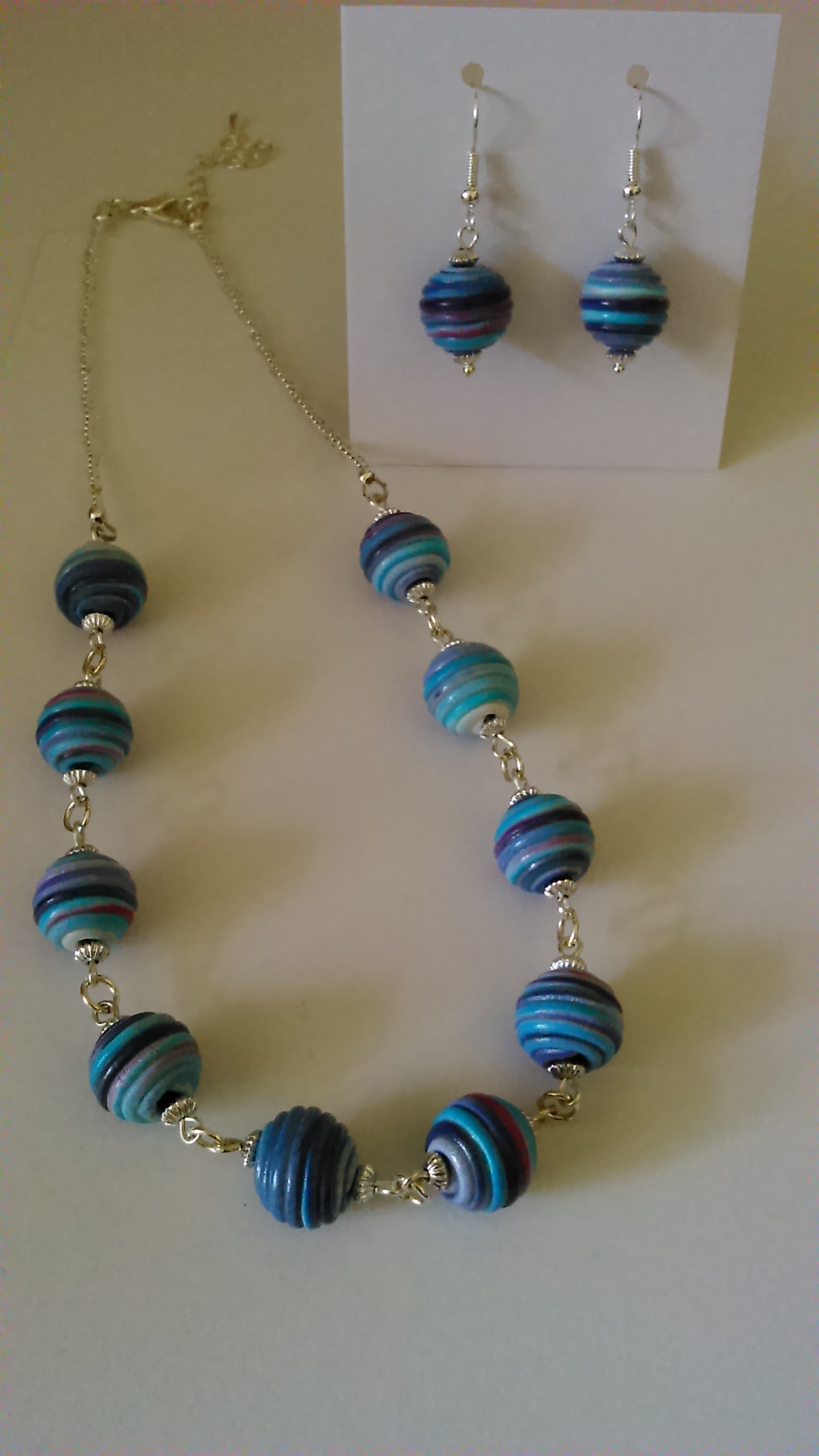 Fimo beads made into necklace and earrings.