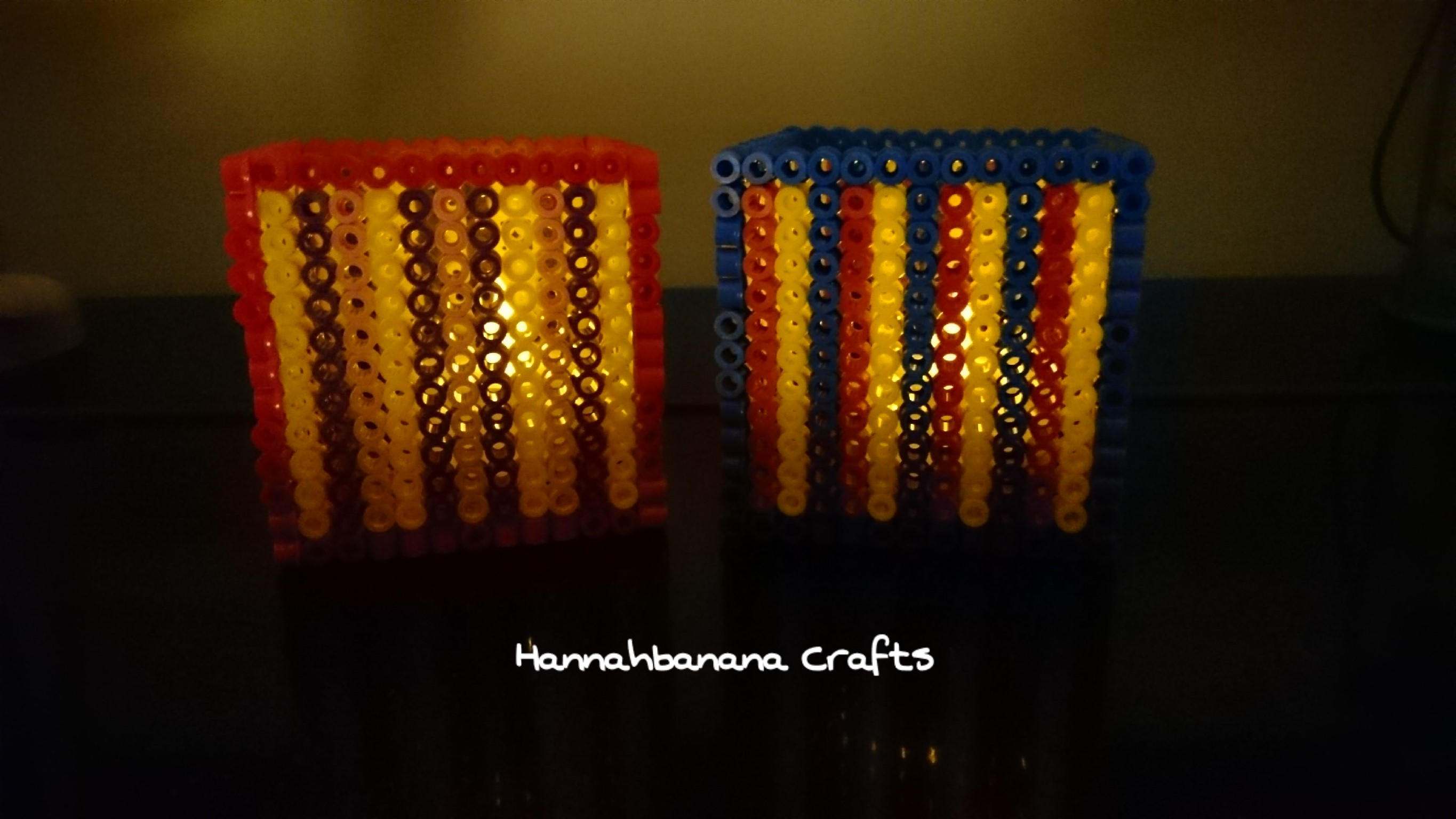 Well, half term came and went. Both kids came down with a heavy cold and chose to spend their days in their pjs glued to Minecraft. We made it out the house briefly but their tolerance for being out and about was low so we opted for long (oh my, some days were very long!) lazy days at home. I did manage to pull them off Minecraft long enough though to play with Hama beads. They love them, I love them so it’s a winner all round. My son is fascinated by the battery operated tea lights so we opted to try making tea light holders. The kids designed the basic squares and I figured out how they would fit together. The results are great.