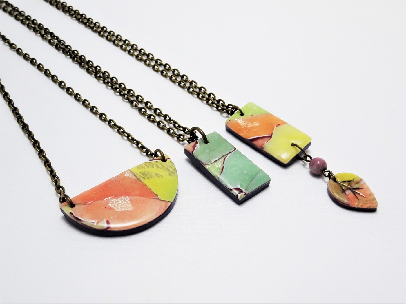 I adore the yellow and orange but really love that green pendant. I’ve teamed them all with antique gold findings as I felt that it suited the warmer colours better than my usual silver.