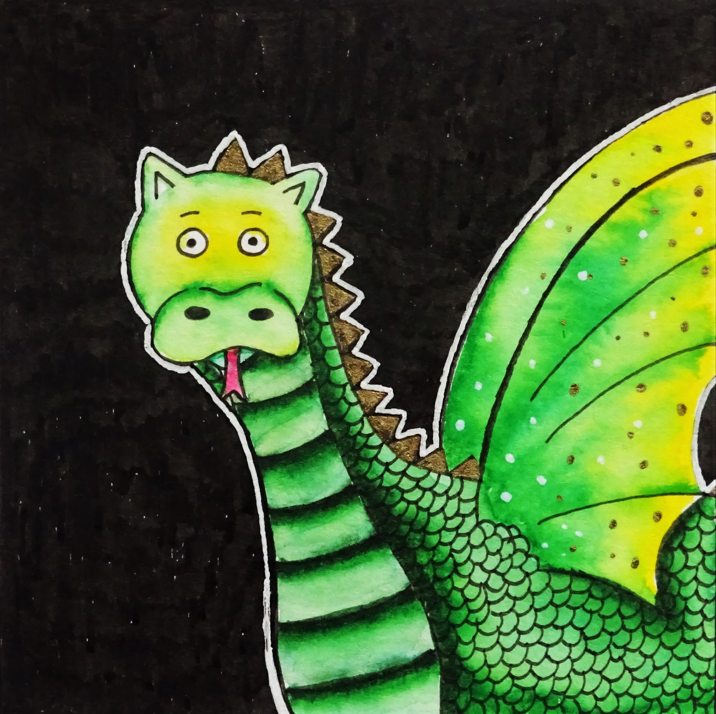 What can I say! Not at all what I would have chosen to draw but I really enjoyed trying. I used my brush pens again with a little white gel pen and a few dots of a gold paint pen.