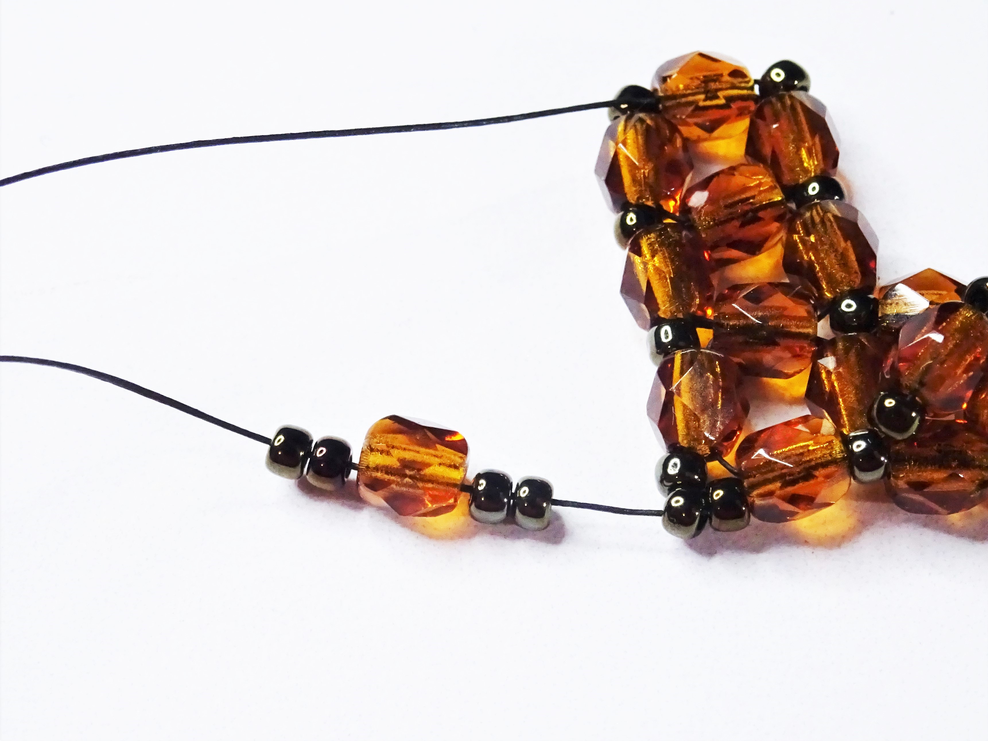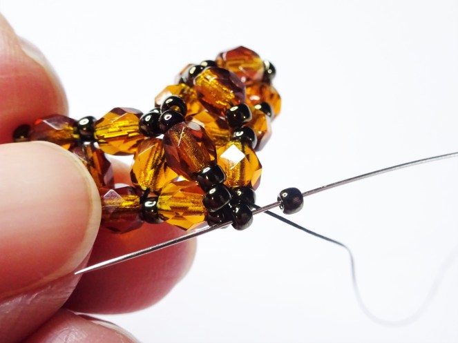 10. Pick up the same bead sequence as in step 9 and take the needle diagonally down into the opposite size 11.