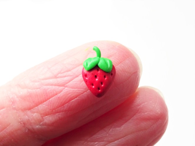 10. Pop your clay into the oven as specified on your packet of clay. Once the clay has cooled give two coats of gloss varnish and wear your strawberries with pride.