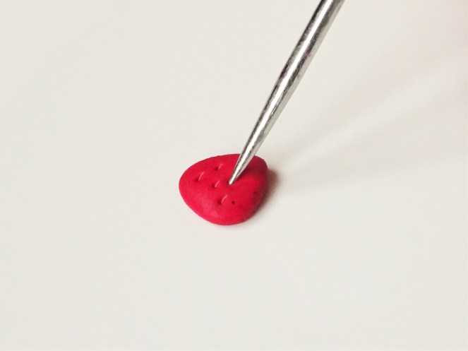 4. Using some sort of pointed tool, dot into the red clay so that the dots resemble seeds.