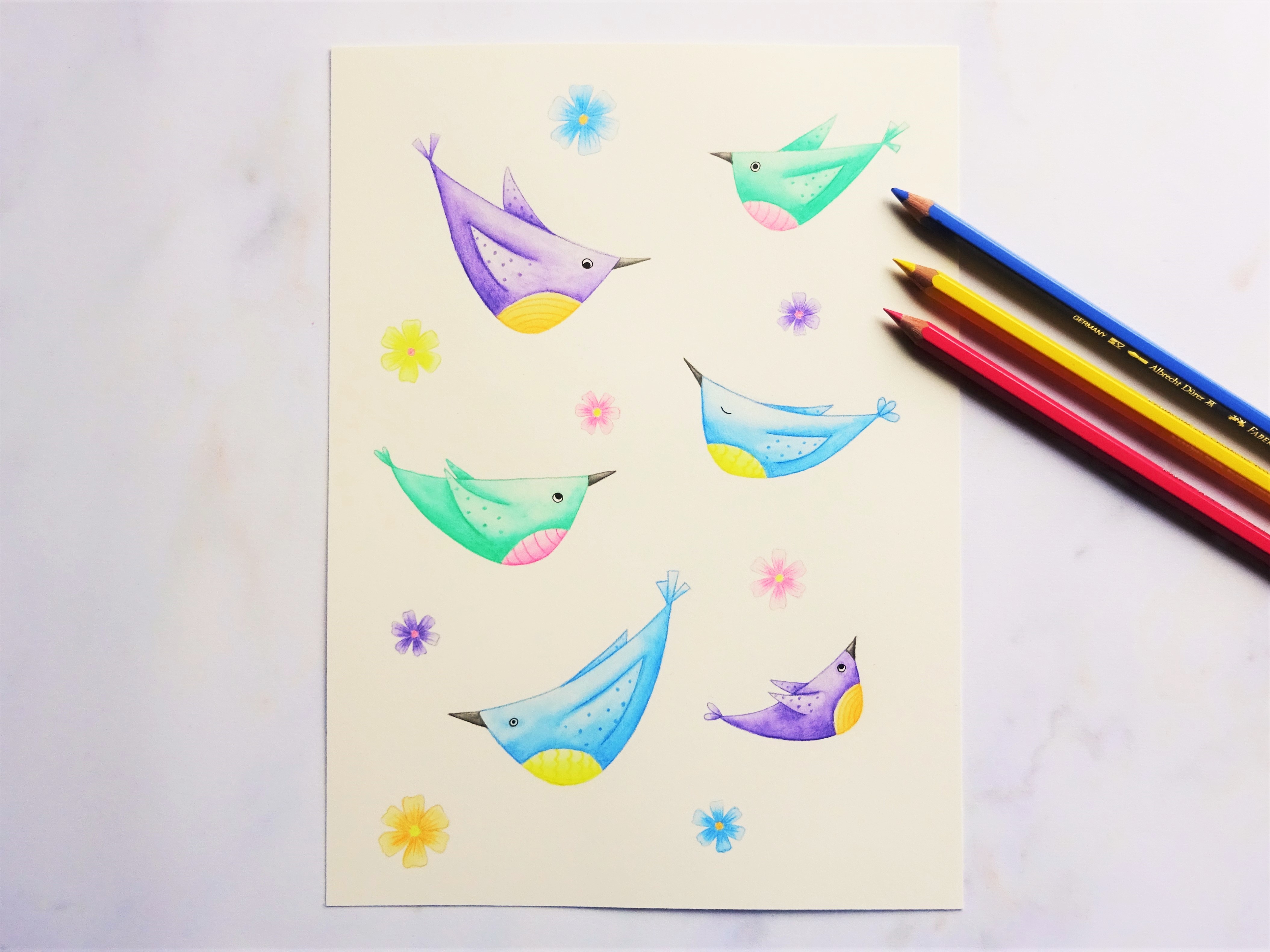 How I Use Watercolour Pencils – Colourful Birds Illustration