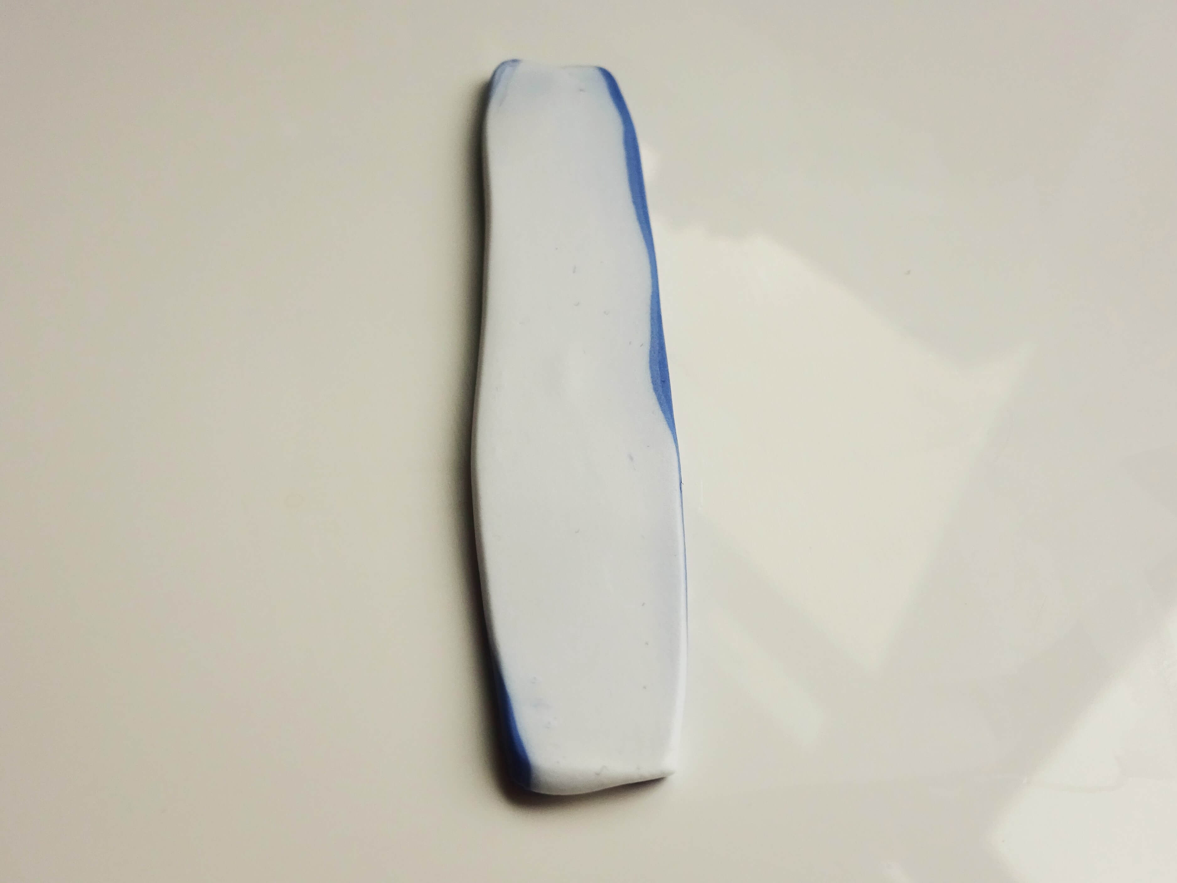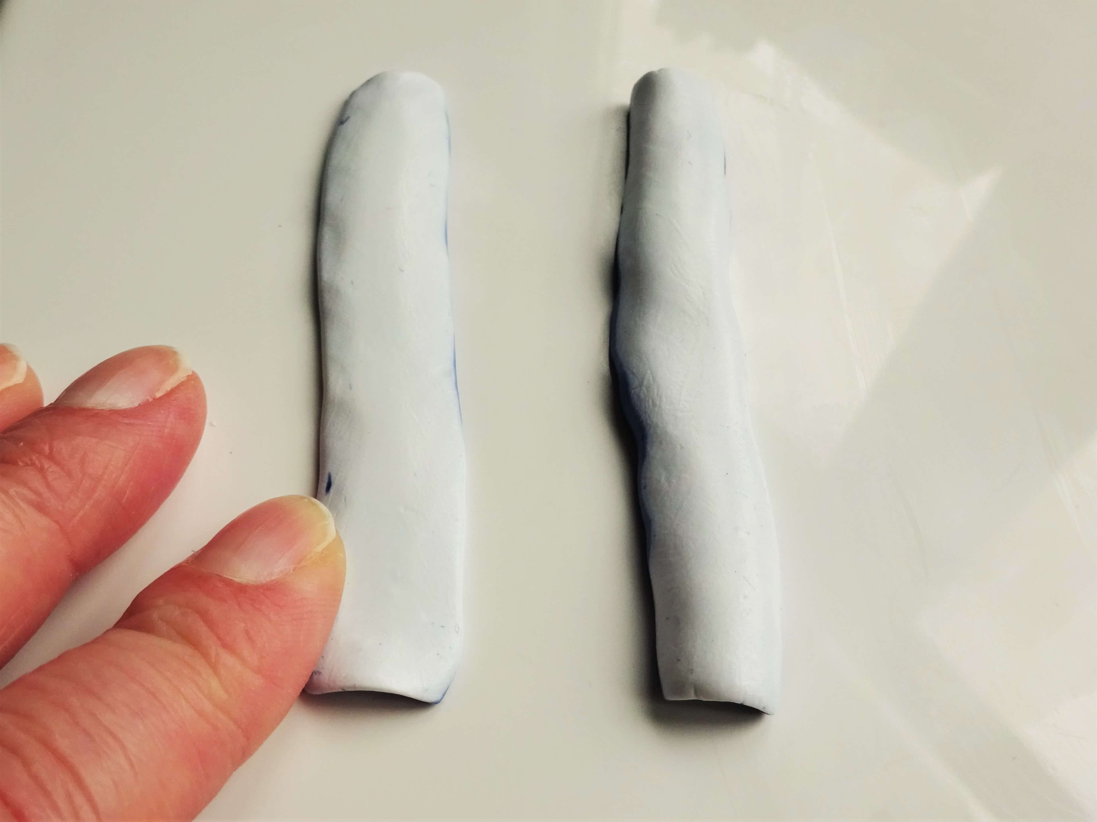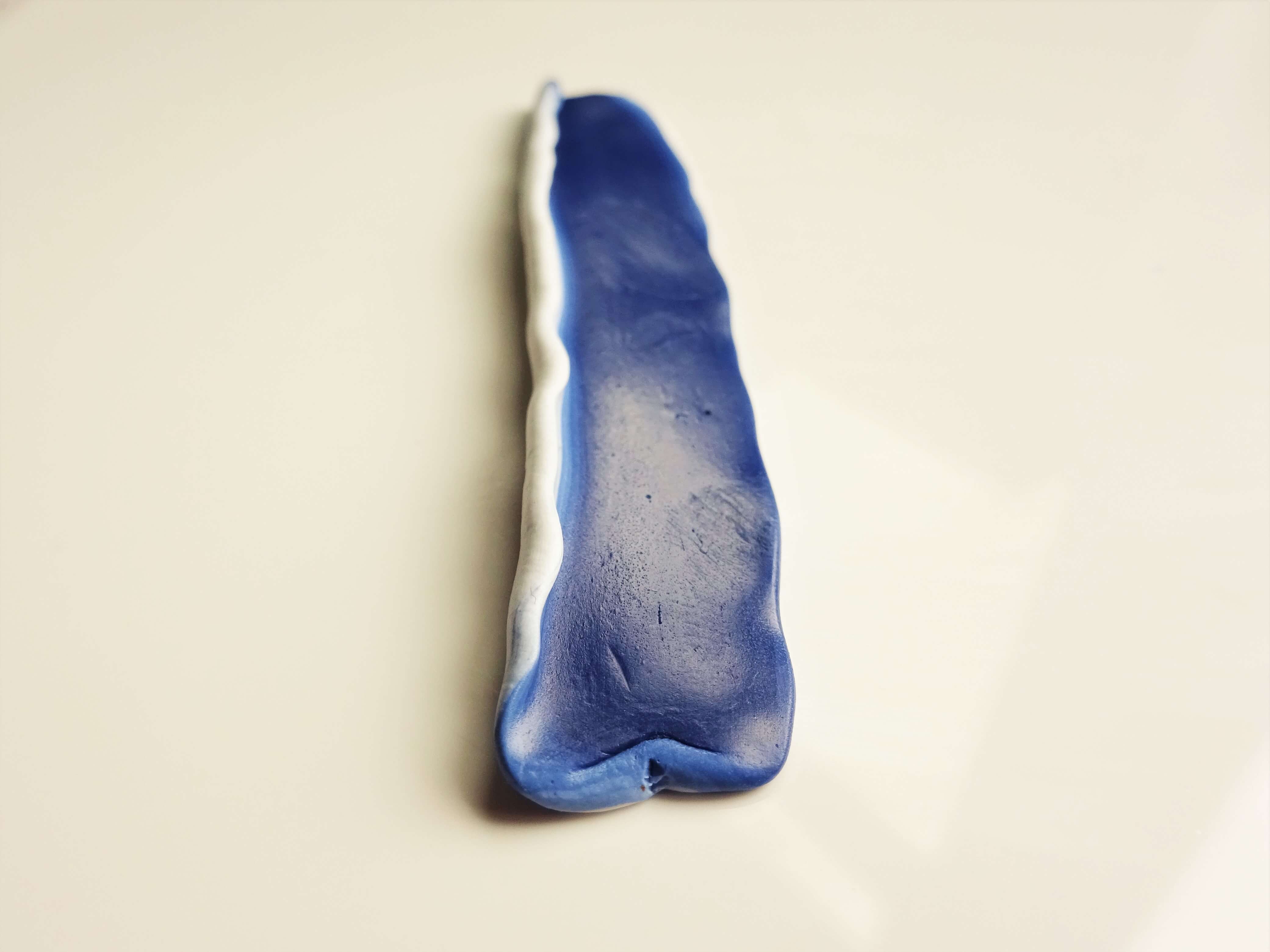 Cut off any excess clay an the ends as we need the white side to be all white and the top dark blue to be all dark blue.