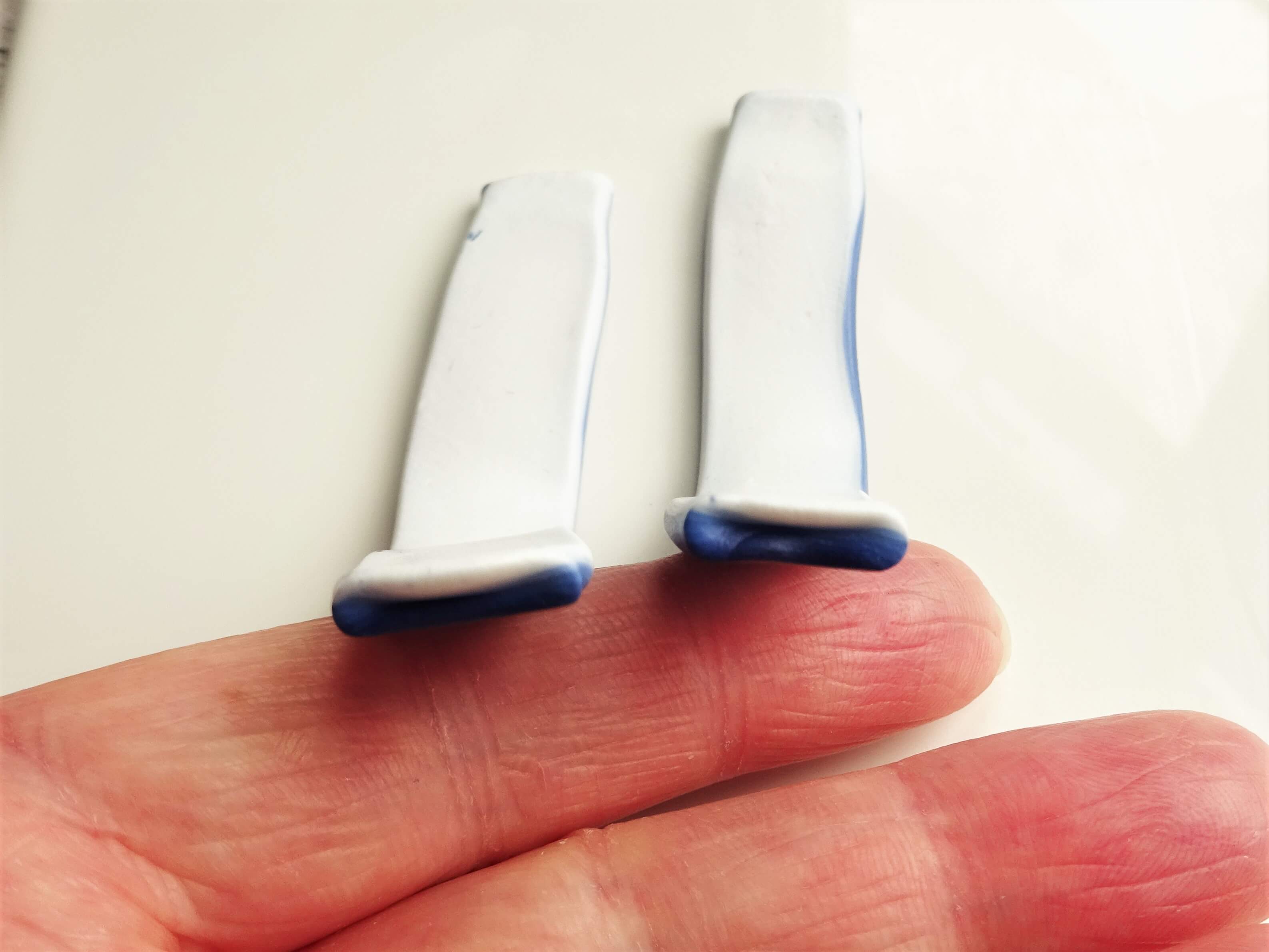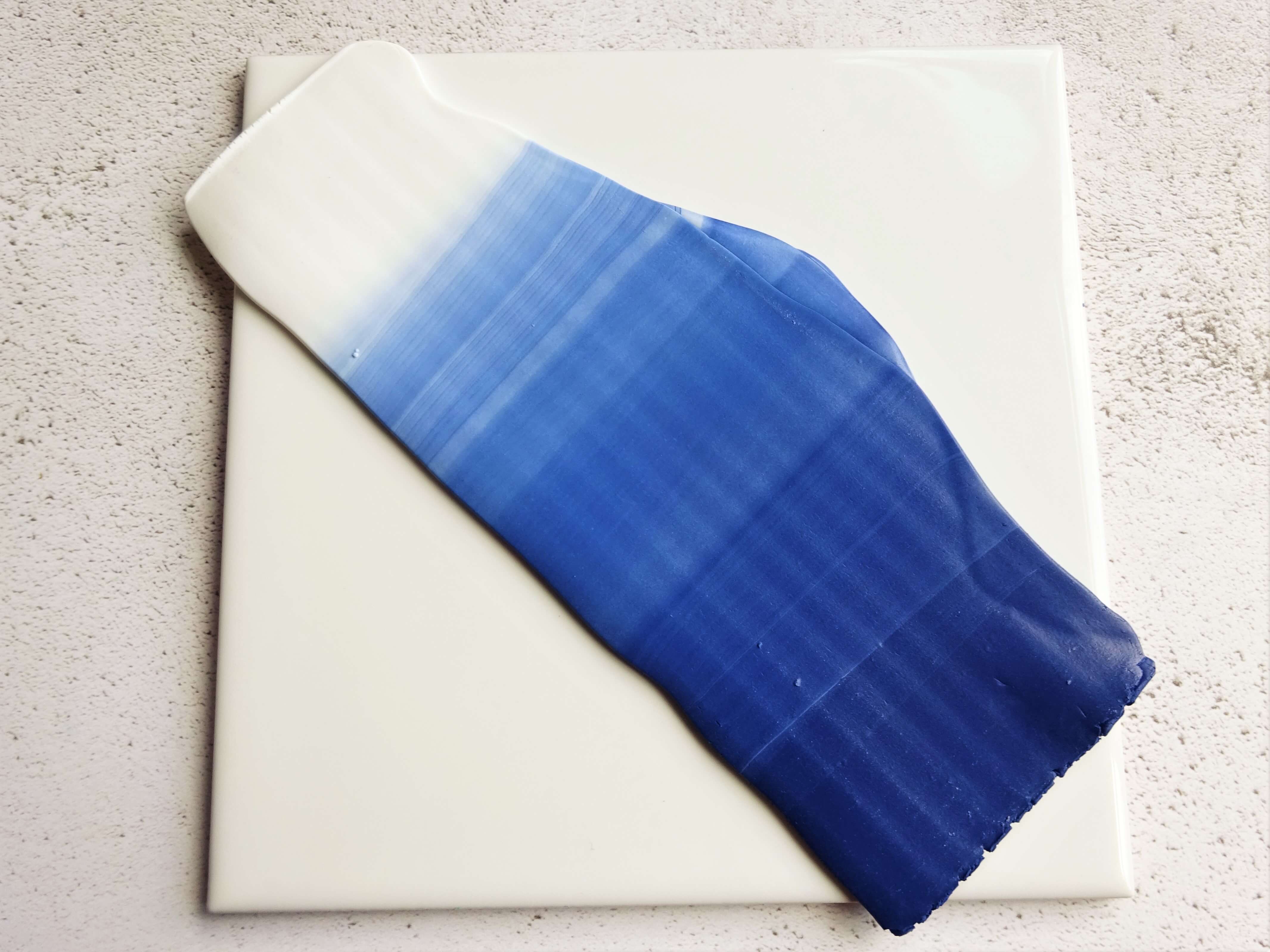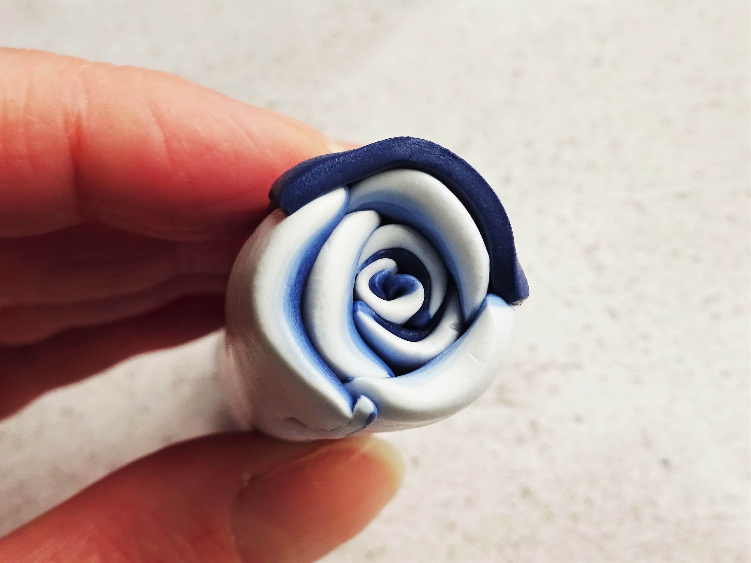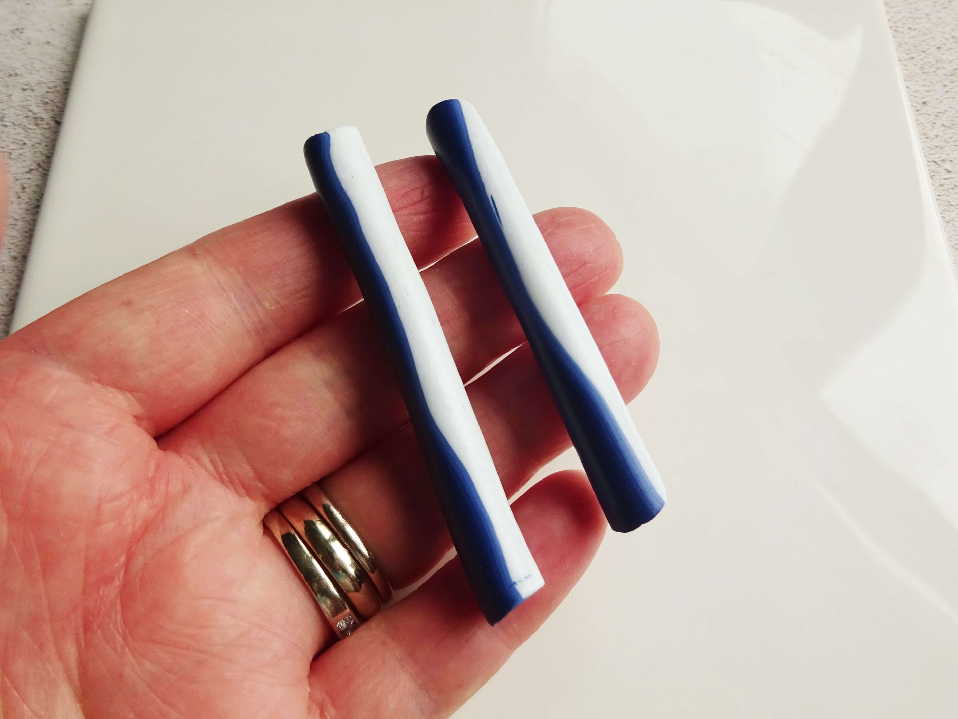 Cut off any excess clay an the ends as we need the white side to be all white and the top dark blue to be all dark blue.