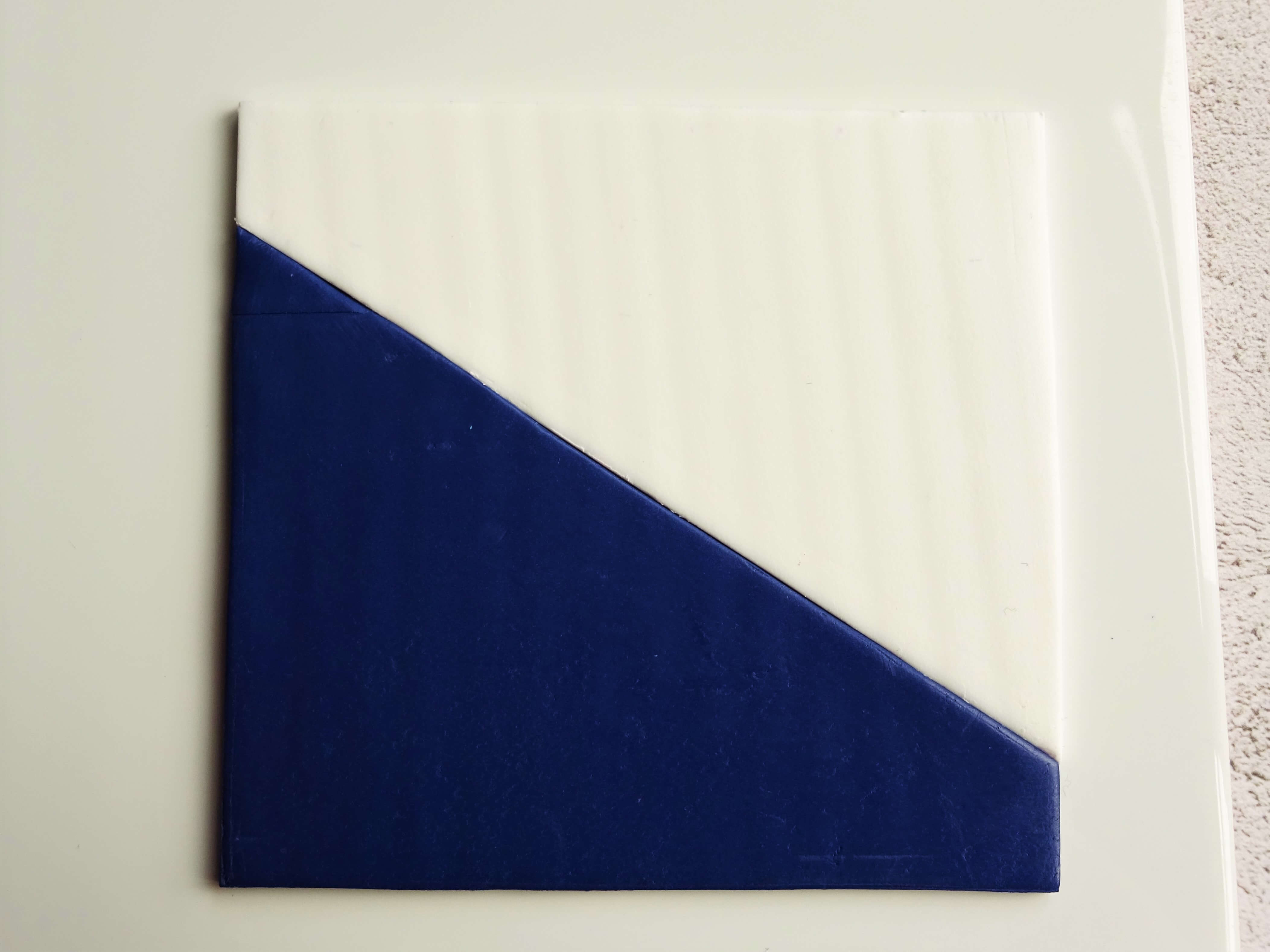 Once the two clay colours are sticking together, pick it up and fold in half so that the white corners are matching together and the blue corners are matching as in 4a.
