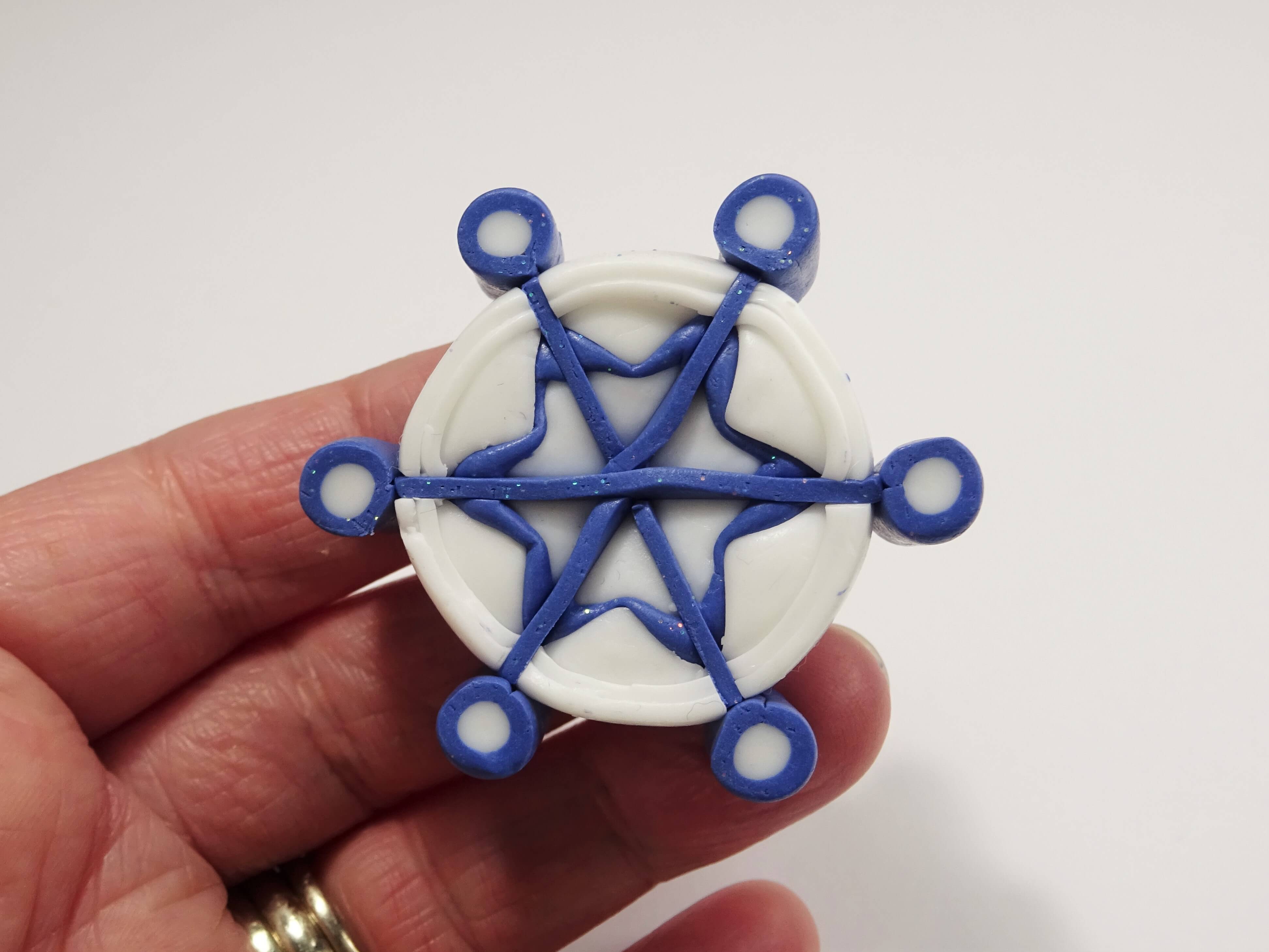 Repeat steps 9 and 10 twice more so that each star point has a line of clay going through it. When cutting the clay for this step try to keep a centre point where the clay crosses in the middle.