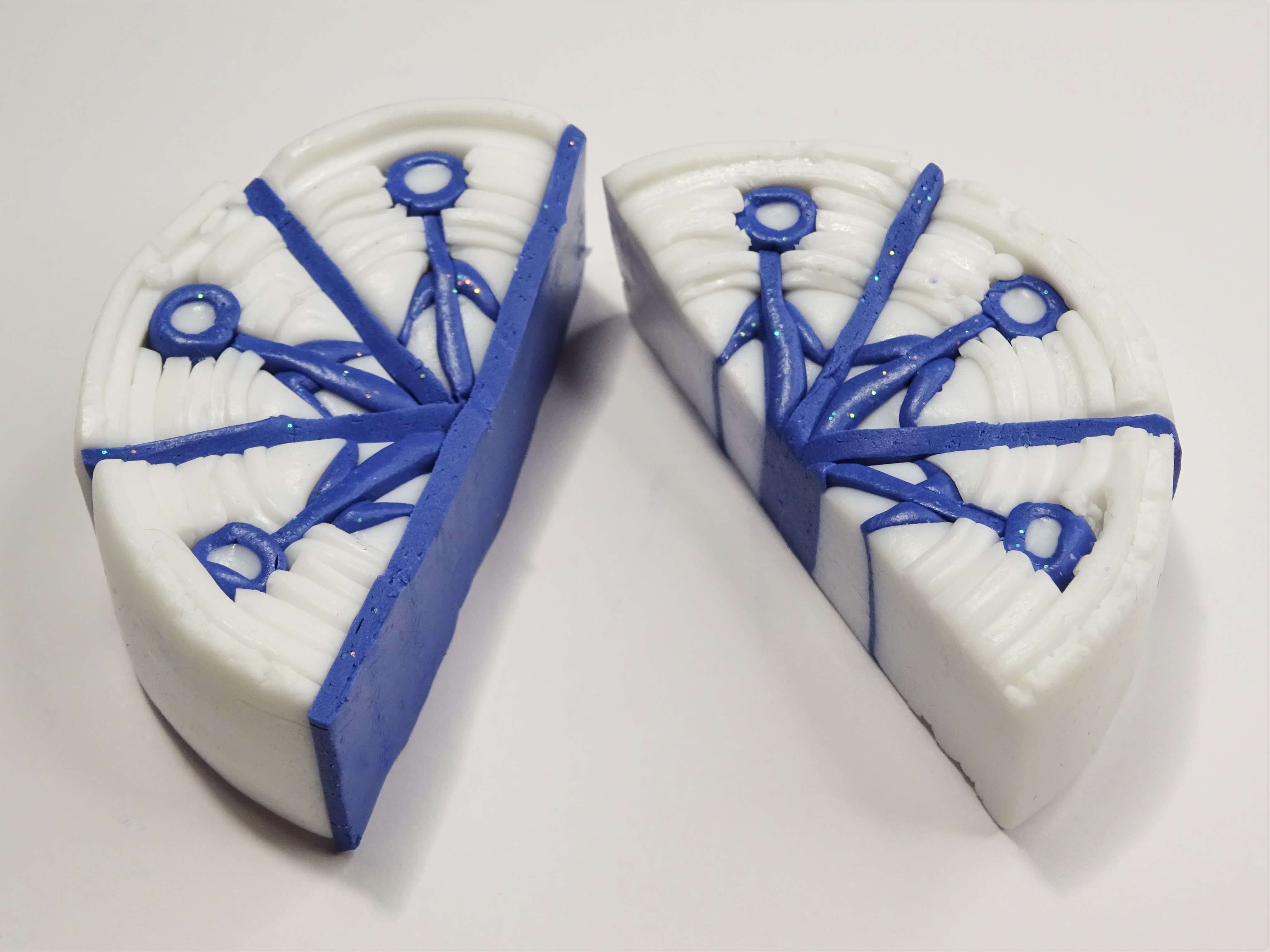 As you have in previous steps, add a layer of blue clay along one of the cut halves.