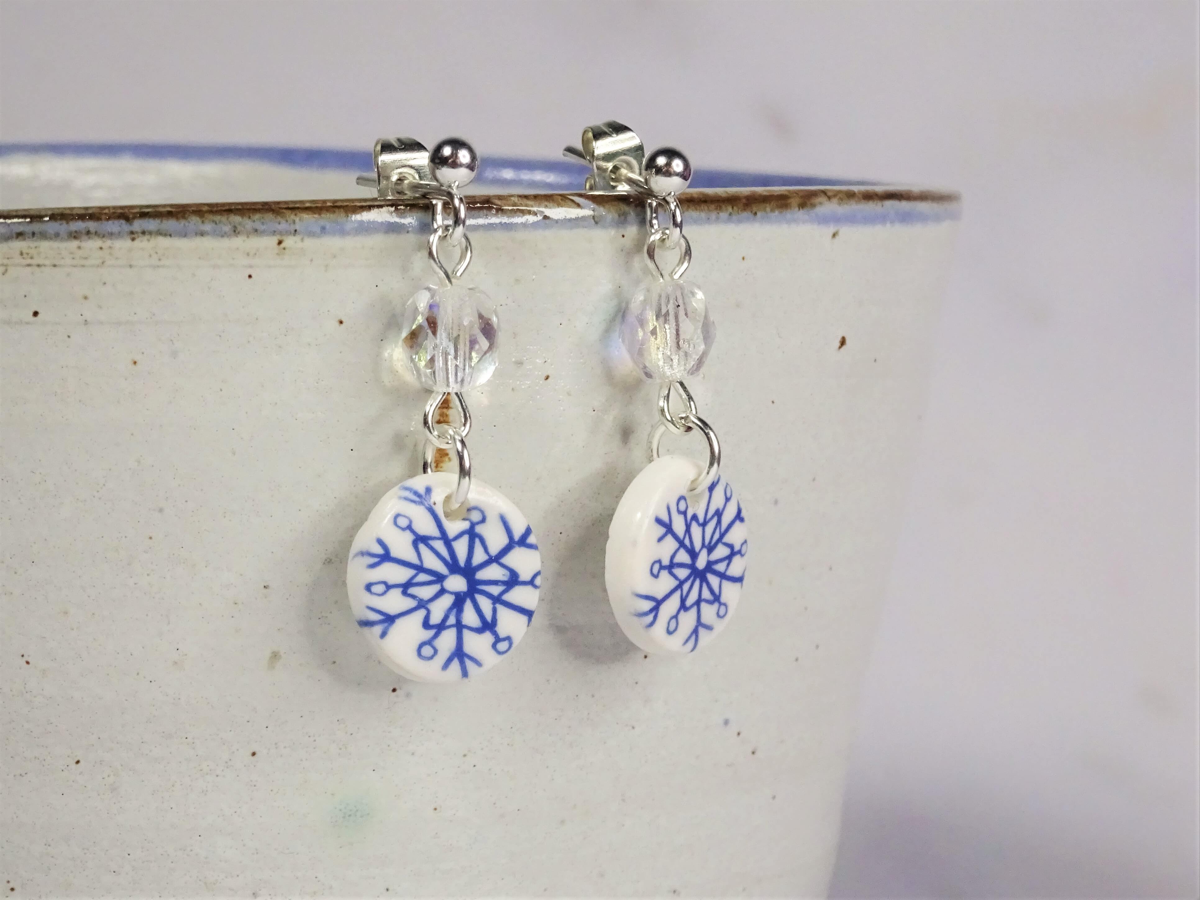 I have tried to make this snowflake cane as easy as possible, because I think it would be all too easy to get weighted down with adding all the lovely little details that snowflakes have, whilst simultaneously adding just enough detail to make it interesting to look at and make. I have made a blue snowflake surrounded by translucent clay for this post but for the YouTube video linked below I have used the same blue clay but surrounded it with white polymer clay. The two different clays produce very different results in the finished pieces with the translucent looking more like glass.