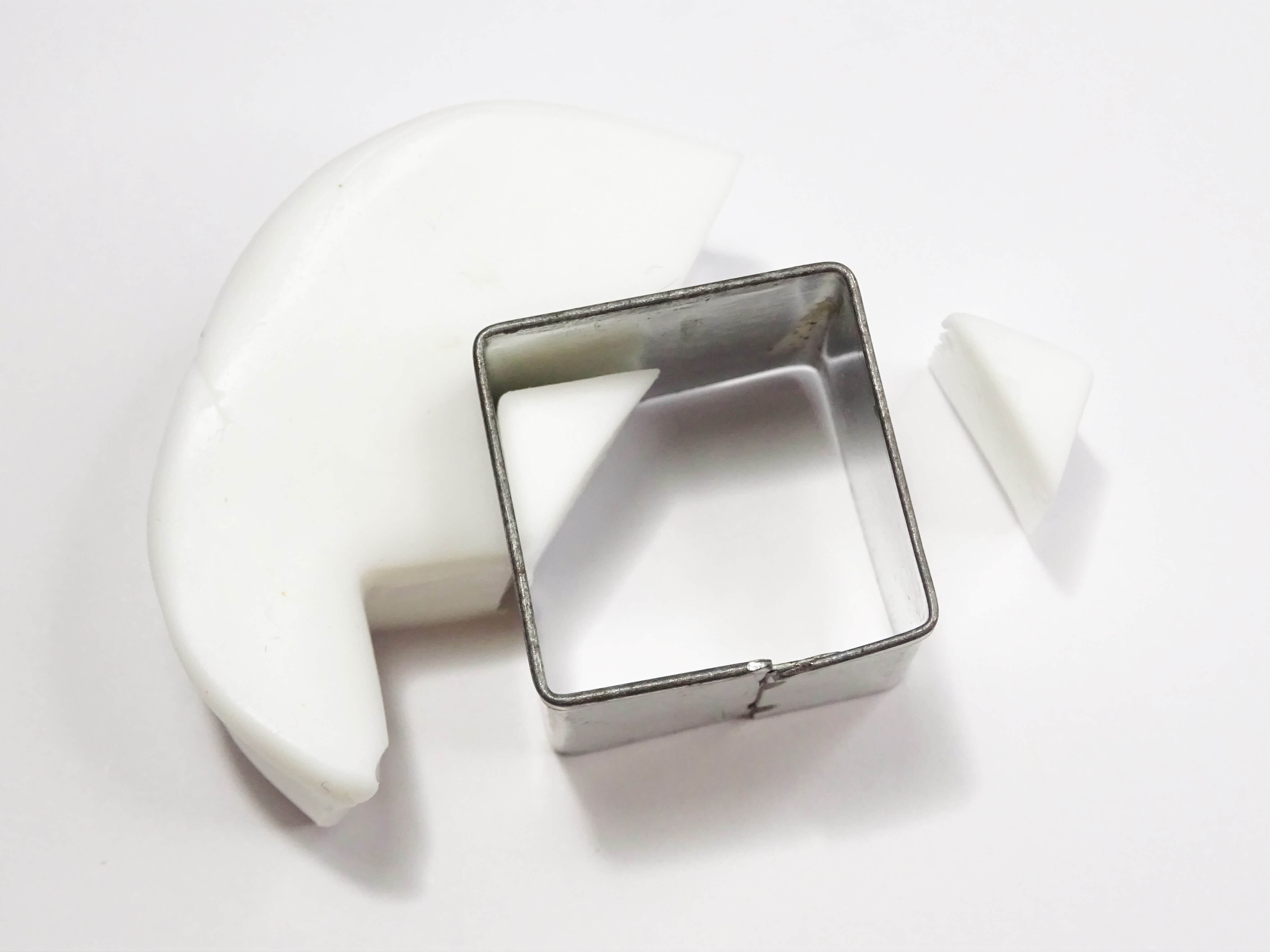 Use a damp tissue to add some moisture to the cutting shape and push the cutters down into the clay. Don’t press down all the way, lift the cutting shape back out, re-dampen the shape and the put the cutter back in and finish the cut. Carefully lift your you cutter shape and the cut clay should either be on the work surface or very easy to remove from the cutting shape.