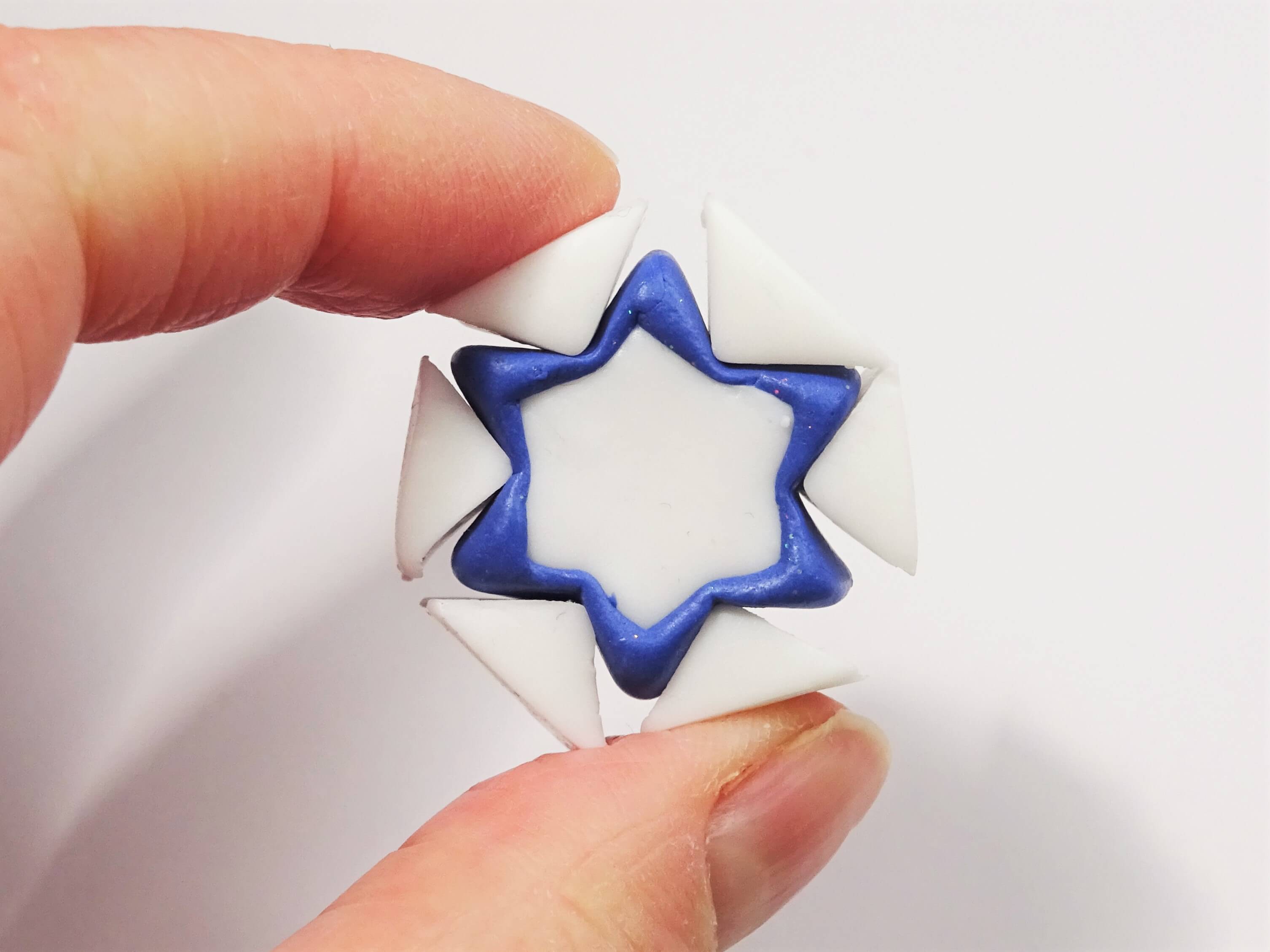 Put the triangle piece back it and repeat steps 23 and 24 all around the snowflake cane.