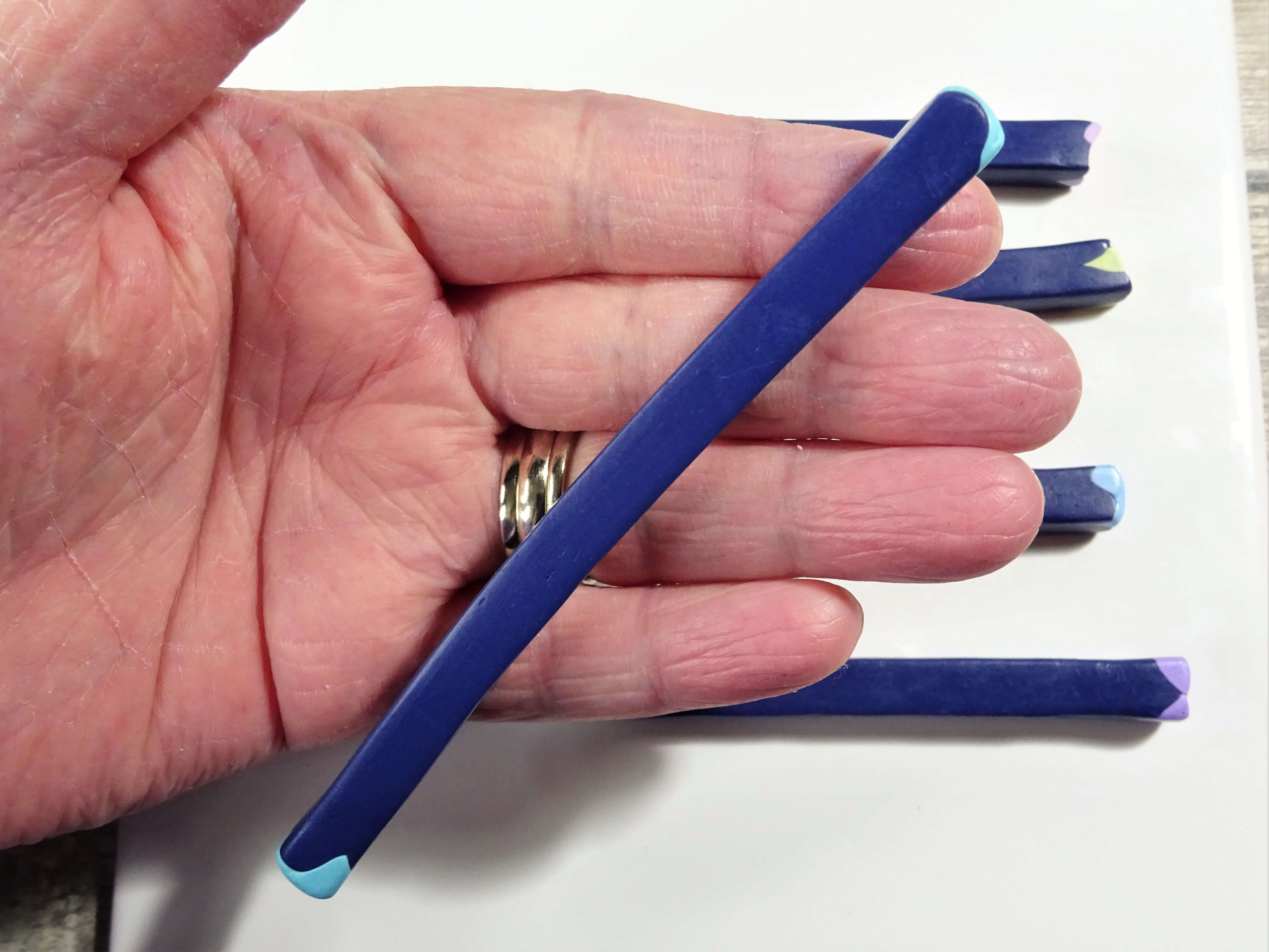 Step 6 – Once your cane is long enough, cut it into 5 even pieces. Repeat all steps again for the remaining colours.
