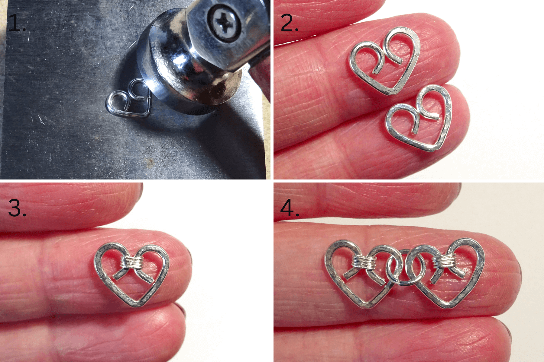 4) Use 6mm jump rings to join your hearts together. Continue making wire hearts until you have enough for your necklace.