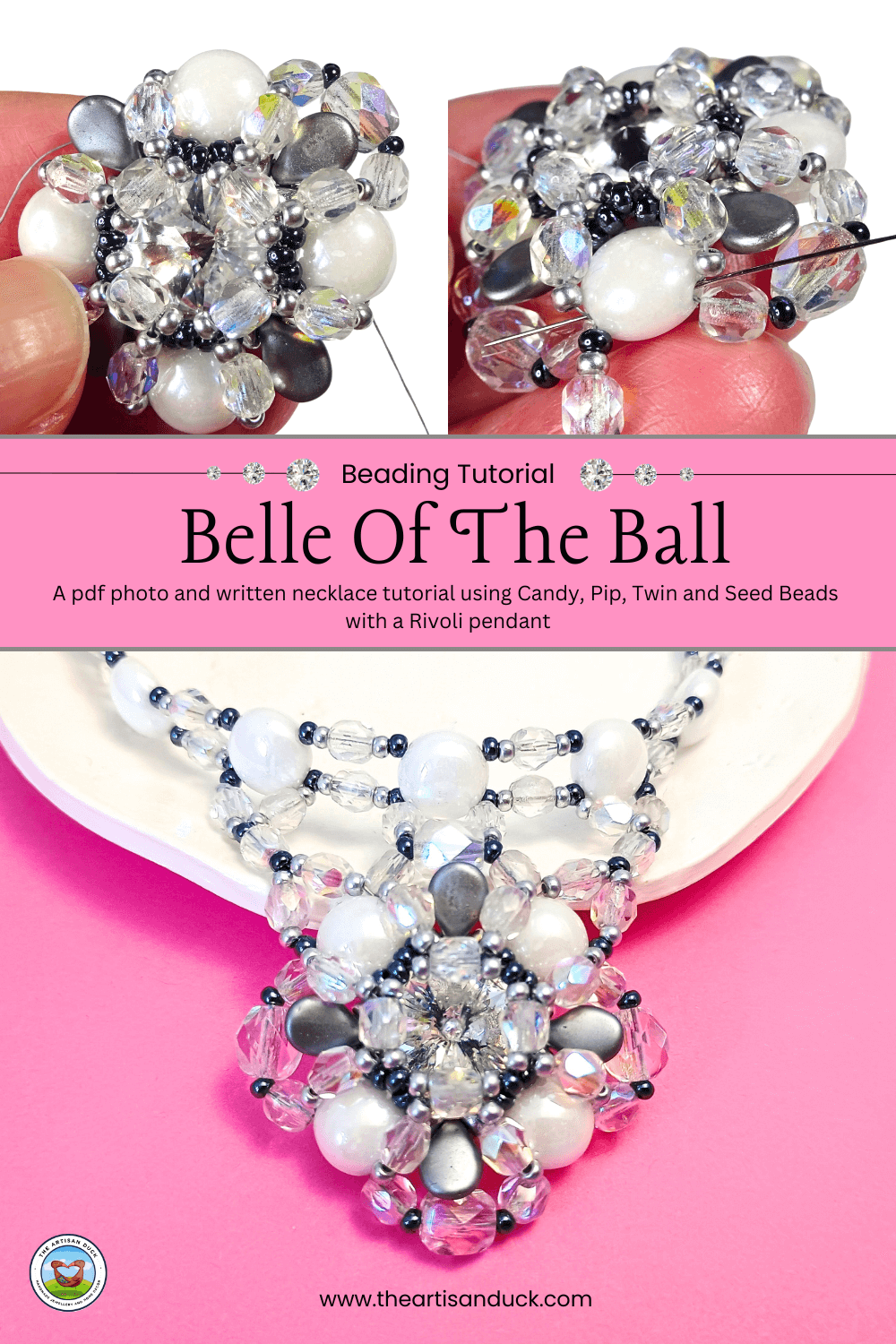 Intrigued by the idea of creating a dazzling beaded pendant featuring a sparkling rivoli centerpiece? Head over to my Etsy shop to grab the full tutorial. Be the Belle of the Ball in your own statement candy and pip bead necklace.