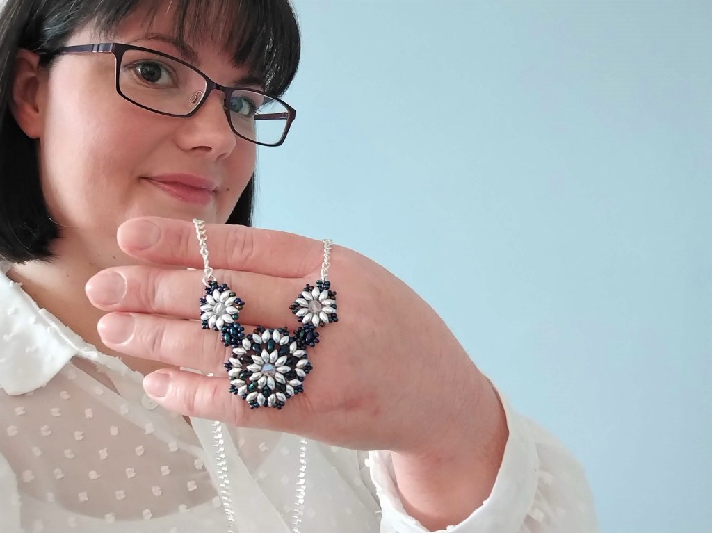 Bead Weaving Trio Of Flowers Necklace is a tutorial showing how I made this necklace with twin hole beads, faceted beads and seed beads. Great for beginners as I show every step from picking up the first bead through to tying knots and adding chain. Also perfect for those looking for a more in-depth bead weaving tutorial.