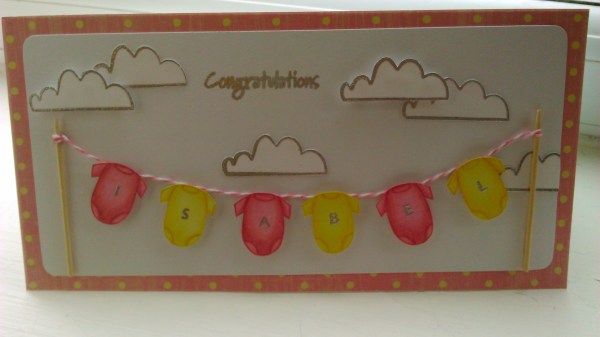 Just thought I'd share a new baby card I made for a friend earlier this week. The sun is shining here so I decided to make a washing line full of baby vests. The photo was taken rather hastily one morning before putting in the envelope so the quality isn't great but each vest spells out 'Isabel'. I... Continue Reading →